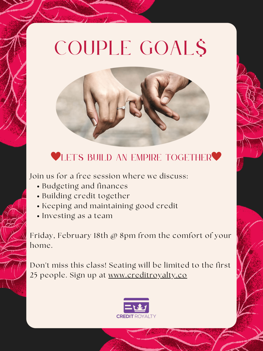 This class presented by Credit Royalty will go over different tips to help improve your overall finances. This class will be free of charge.